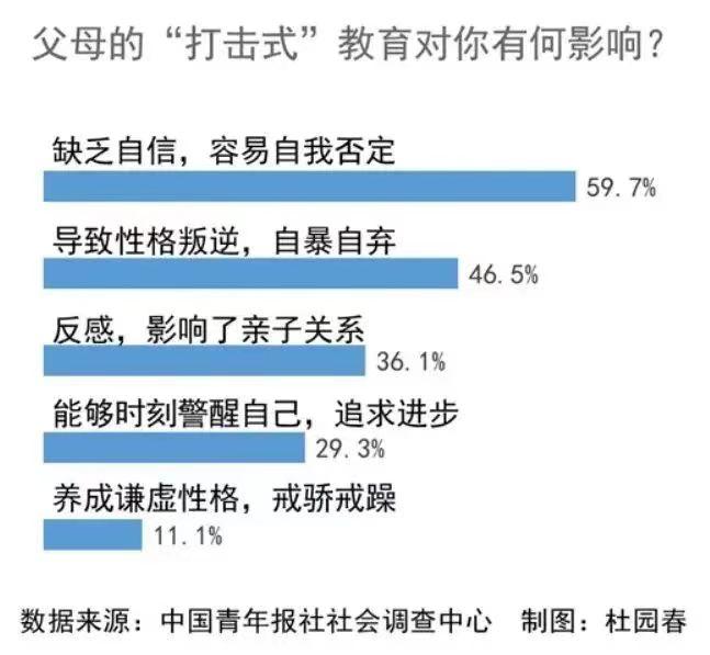 结果显示,59.7%的人认为“打击式”教育,会让自己缺乏自信,容易自我否定;