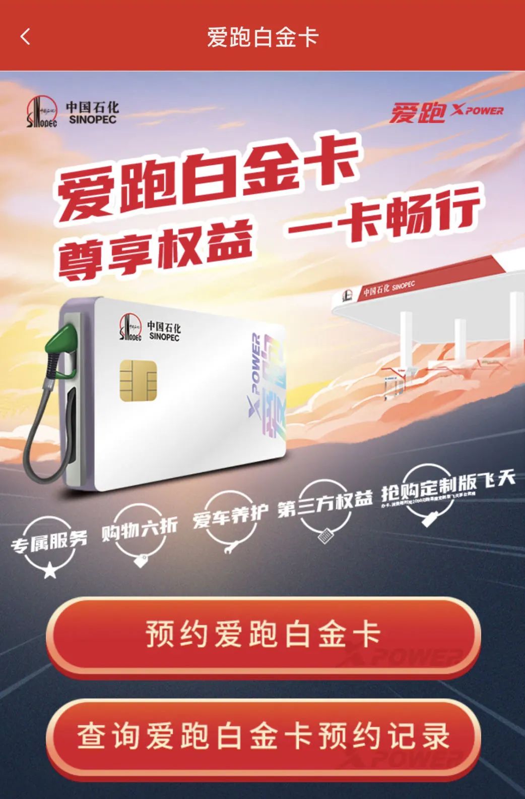 “爱跑白金卡”持卡人进站加油时