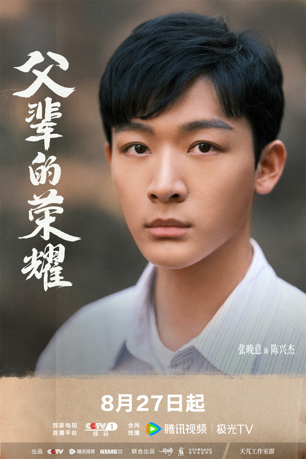 由《陈情令》主创团队新湃传媒打造,赵冬苓编剧,康洪雷担任总导演,张晚意、郭涛、刘琳领衔主演,张月主演,李浩菲特邀主演的电视剧《父辈的荣耀》定档8月27日CCTV-1黄金档播出,腾讯视频全网独播。