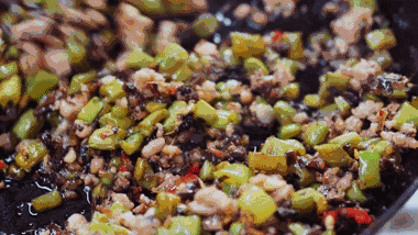 它比豇豆更宽,更短,切成小粒能看见中间的汁水,干煸后鲜香浸透,更多一抹油香,非常美味。