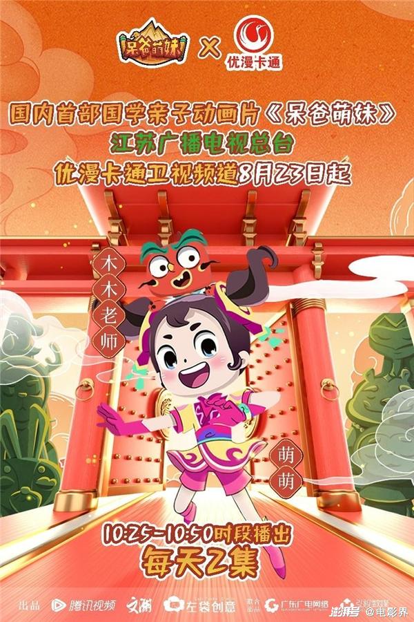 8月23日,动画片《呆爸萌妹》在江苏广播电视总台优漫卡通卫视频道播出,每天10:25至10:50更新2集。这部由企鹅影视、文渊星成、左袋创意和广东广电网络、弘视数媒联合出品的国内首部国学亲子动画片,自2022年在腾讯视频全网独播后,在热度和口碑上收获了满满的好评,曾被评选为广东省原创网络视听精品项目库作品。此番《呆爸萌妹》登陆全国五大上星动画卫视之一的优漫卡通,有望收获更多“呆萌粉丝”,掀起一波”字灵热“。