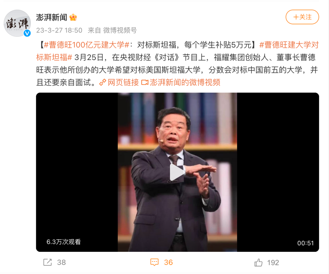 2022年,曹德旺耗资100亿元建大学的新闻,在社交网络上被刷屏!
