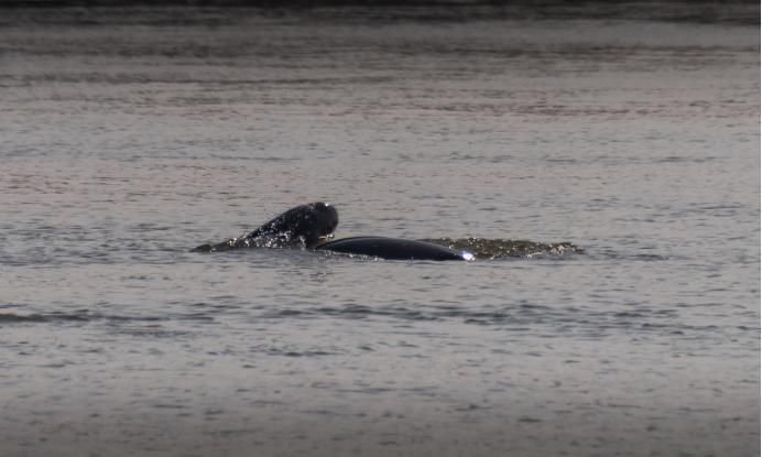 江豚戏水八里江(邹小平 摄)以重大工程促进江豚保护的安庆经验