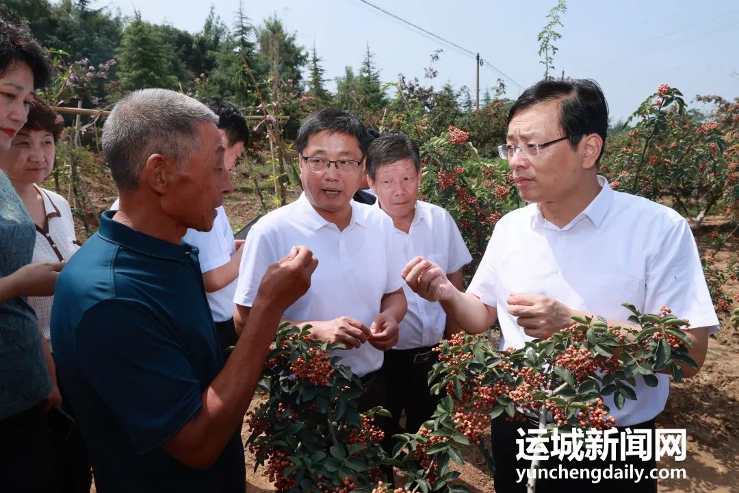 8月24日,市委书记丁小强深入芮城县调研农业产业化发展。他强调,要深入实施农副产品精深加工产业集群发展行动,大力提升农业产业化水平,培育壮大龙头企业,打造产业链条全、价值效益高的全产业链,切实把农产品资源优势转化为产业优势,加快推动运城由农业大市向农业强市转变。市委常委、秘书长乔登州参加。