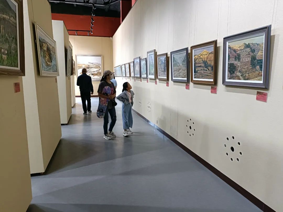 据了解,黄河美术馆是托克托县第一座美术馆,是在20世纪90年代所建的原大修厂电工车间和冲压车间基础上改造而成,在尽量保留过去厂房车间的外观与内部结构的基础上,加以翻新改造,进行优化和利用。根据场地划分为1号厅和2号厅,1号厅以“土黄色”为基本色调,源于托克托县紧傍黄河,设计融入了母亲河——黄河的元素,与地域密切相连,将黄河澎湃的历史文化底蕴融入其中。2号厅以“石榴红”为基本色调,契合铸牢中华民族共同体意识主题,象征着蒸蒸日上的托克托各民族交往交流交融,黄河儿女用自己的勤劳和智慧建设着美丽的家园。