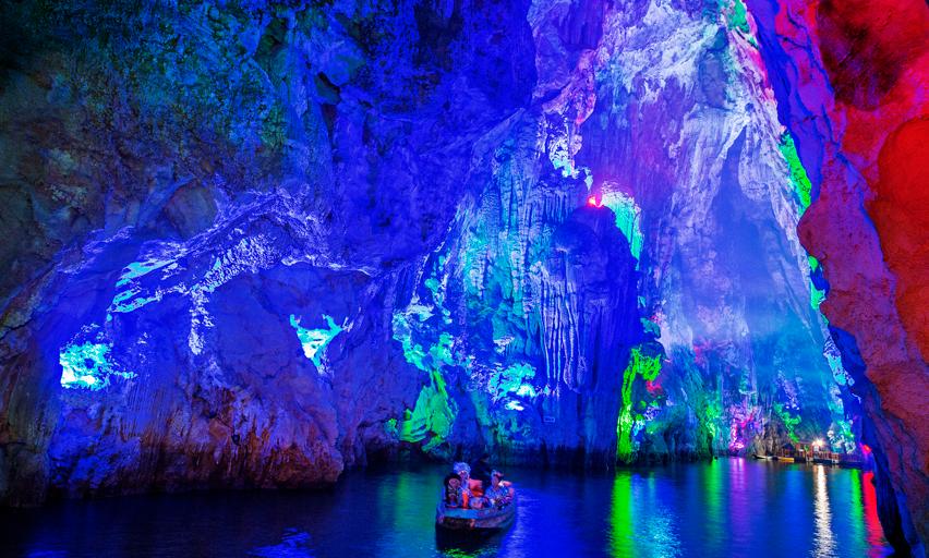 贵州溶洞内崎岖蜿蜒、层峦叠翠、五彩斑斓,景观之绝,美不胜收,目不暇接。