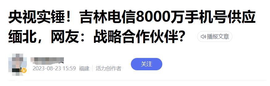 原标题:《向缅北提供8000万个手机号?吉林电信回应!真相是……》