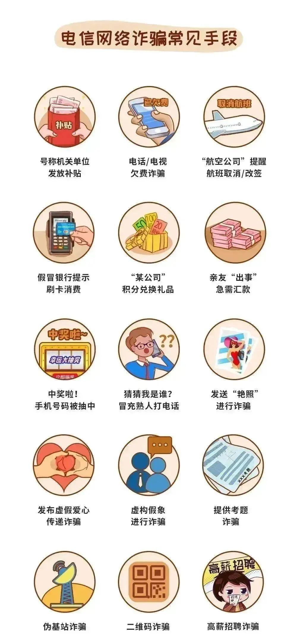 1.网络刷单诈骗:凡是打着“网络兼职”旗号,以返佣金为诱饵,要求你以刷单形式做任务的。2.网络贷款诈骗:凡是打着“零门槛”“无抵押”“当天放款”等旗号,以预付手续费、预交保证金、增加银行流水记录等为由,要求先行转账汇款或者索要银行卡密码、手机验证码的。
