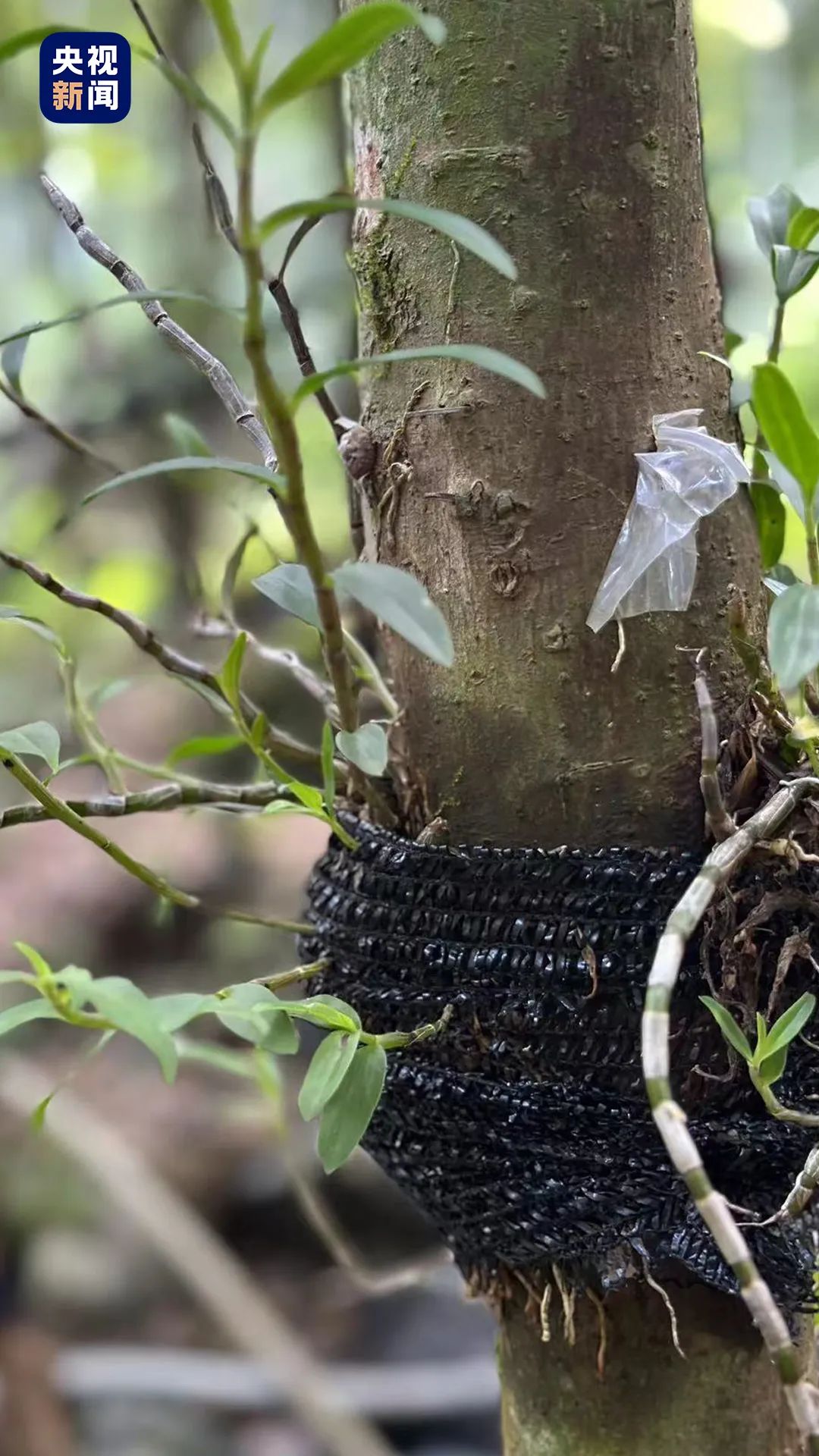 花桥镇昭林村有一种“最不接地气”的中药材——号称九大仙草之首的铁皮石斛,它既不是从土里长出来的,也不是从树里长出来的,而是被网状布“绑架”种植上去的。