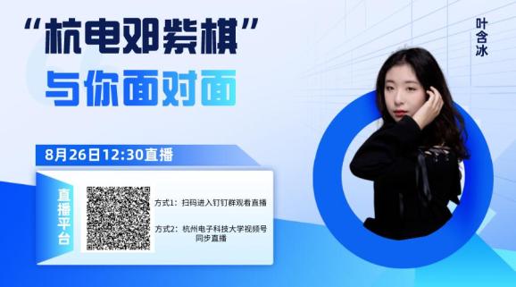直播预告:“杭电邓紫棋”与你面对面,暨全媒体达人研修班第3课,将于8月26日12:30(周六)在“光语”全媒体达人研修班钉钉群,杭州电子科技大学官方视频号同步直播。欢迎收看。