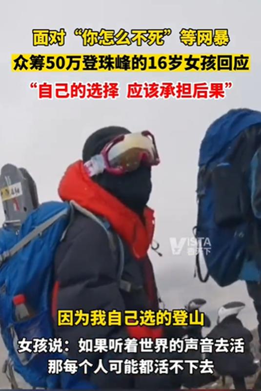 一名16岁女孩因为众筹50万登珠峰,不断地被网友网暴“你怎么不死”。