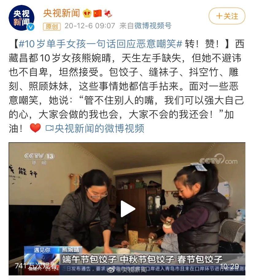 熊婉晴天生左手缺失,却从不避讳也不自卑。