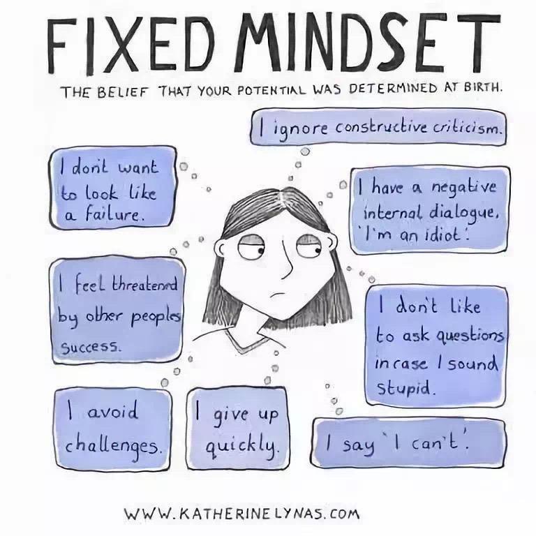 拥有固定型思维的孩子,消极,固步自封,不相信努力和坚持的意义。