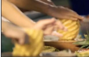 女儿想吃冰淇淋,她没有钱买,就帮女儿制作了一个菠萝冰淇淋。