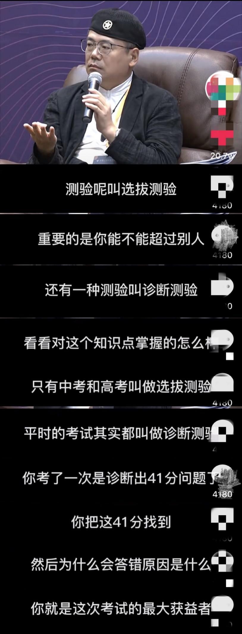 你就不一样了,你诊断出了41分的问题,你把这41分的问题找到,你就是这次考试最大的受益者。”