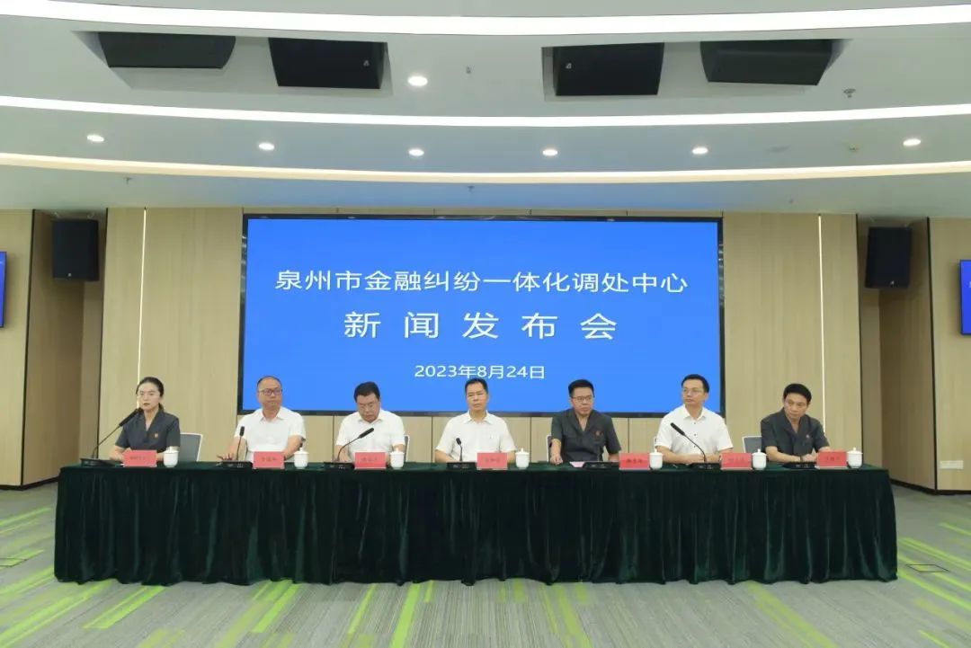 2.新闻发布:2023年8月24日,泉州市金融纠纷一体化调处中心在海丝中央法务区法治服务中心召开新闻发布会。受市委政法委委托,泉州中院党组成员陈水深通报中心启动以来的运行情况。受中心委托,丰泽法院党组书记、院长庄能宗发布服务保障金融安全与优化发展八项举措。