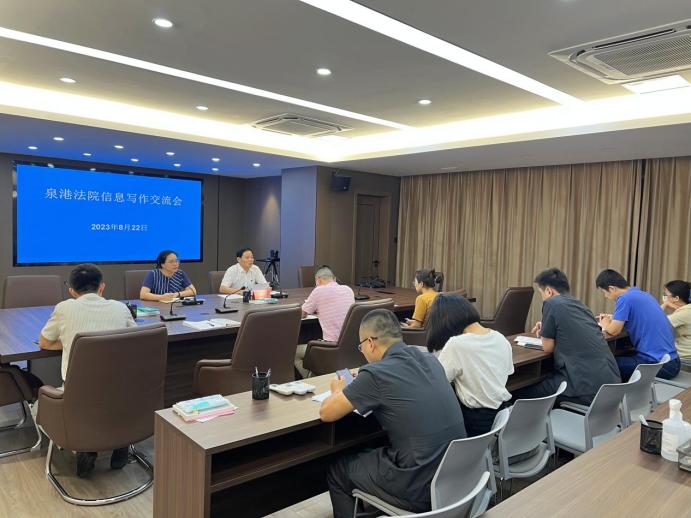 5.培训交流:8月22日,泉港法院召开信息写作交流会,通过培训交流,促使各部门在打造特色亮点、塑造审执品牌的同时,注重信息挖掘和提炼,共同推动信息工作提质量、出精品。