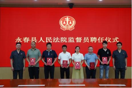 9.法院监督员:为进一步健全和完善人民法院监督机制,提升司法公信力,8月25日,永春法院举行新一届人民法院监督员聘任仪式暨座谈活动。新一届人民法院监督员共28名,聘期为五年,涵盖了代表委员、机关国企、群团组织、村居干部、民营企业等各界代表,具有广泛的群众基础和较强的代表性。