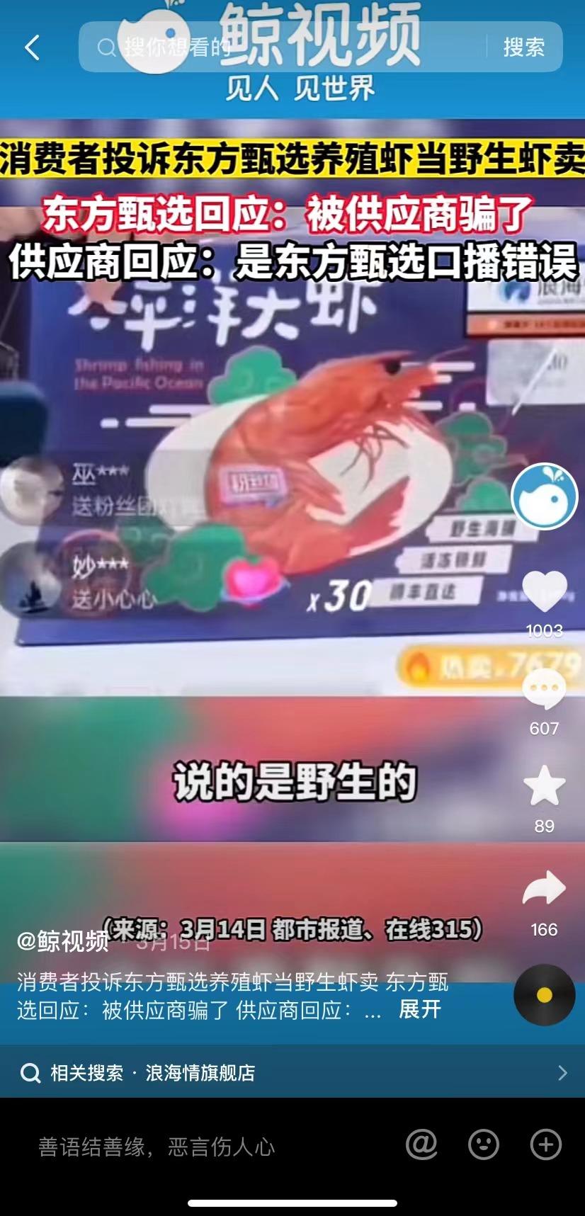 此前3月,有消费者质疑东方甄选直播间虚假宣传,其销售的一款“厄瓜多尔白虾”,实际并非其宣称的“100%野生海捕虾”,而是养殖虾。新东方创始人俞敏洪对此回应称,此前东方甄选受到供应商误导,把养殖虾当成野生虾来卖,犯错之后就要改正,但不能故意犯错,以后也不能再犯类似错误。