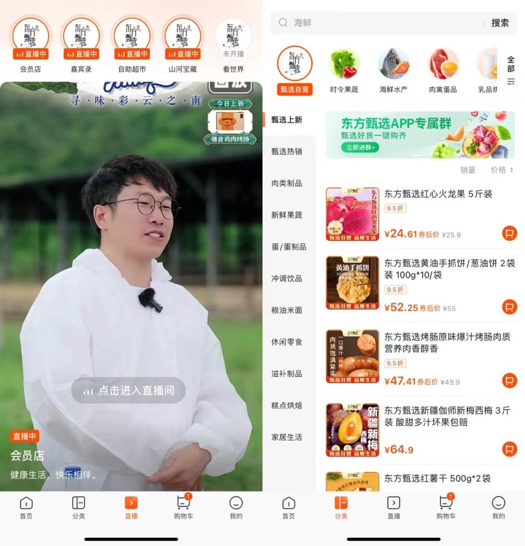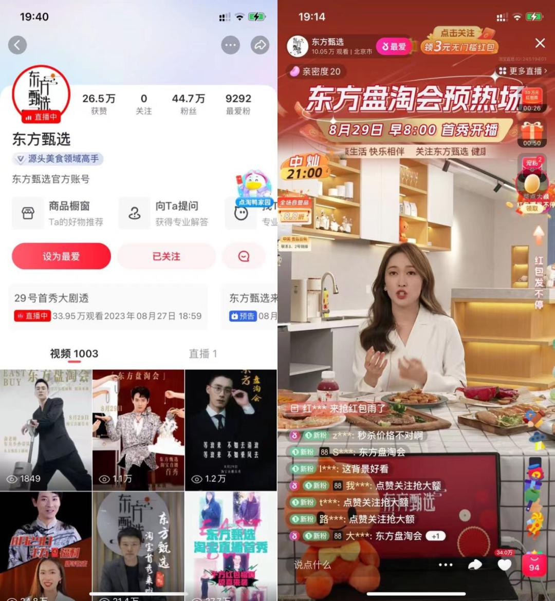 直播来到下半场,跨平台布局已经常态。走红之初,东方甄选就推出了自营产品并上线自有App,到今年7月初,App开通直播业务。