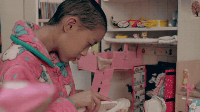她身上有刺,对成年人有一种逆反心理,什么都要拧着来。但她内心深处并非如此,生病的时候,承受那么多痛苦,从来不哭,也不诉苦,是一个坚强的小女孩。我故意剪进一段我和婷婷的对话,我是直接被K.O.的无聊大人,对她熟悉的东西一无所知,不知道怎么跟她接近,在她眼里我就是另一个世界的人。