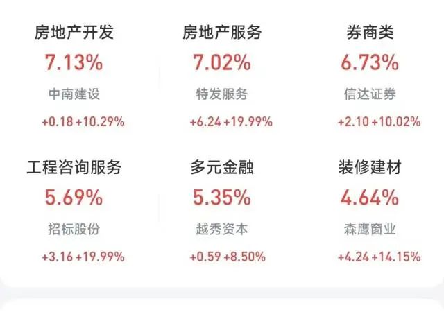 从盘面上看,券商股几乎全线涨停,房地产、软件股批量涨停;半导体、数字货币、AI概念股表现活跃。