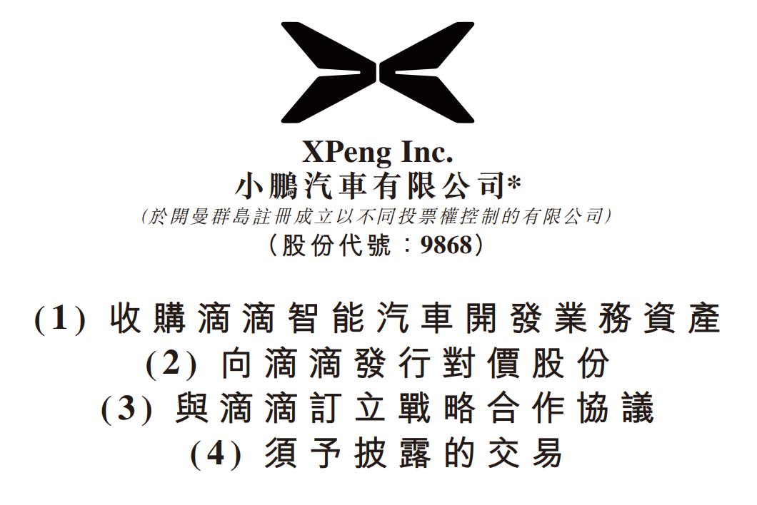 根据小鹏发布的公告,小鹏要用自己 3.25% 的股份(最高约为 58 亿港币 )收购滴滴的智能汽车业务。