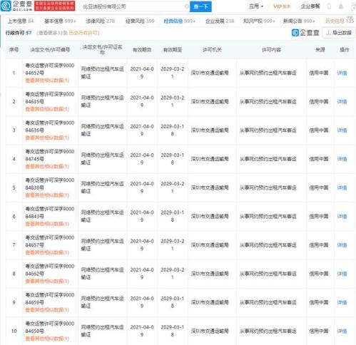 2021 年 5 月,比亚迪获得多项 “ 网络预约出租汽车运输证 ” 行政许可。