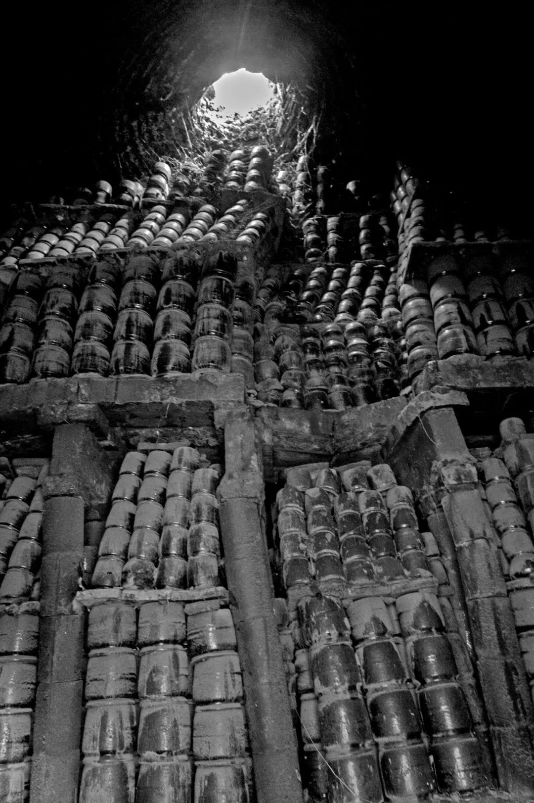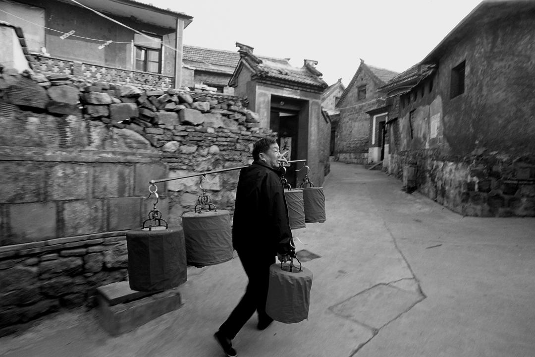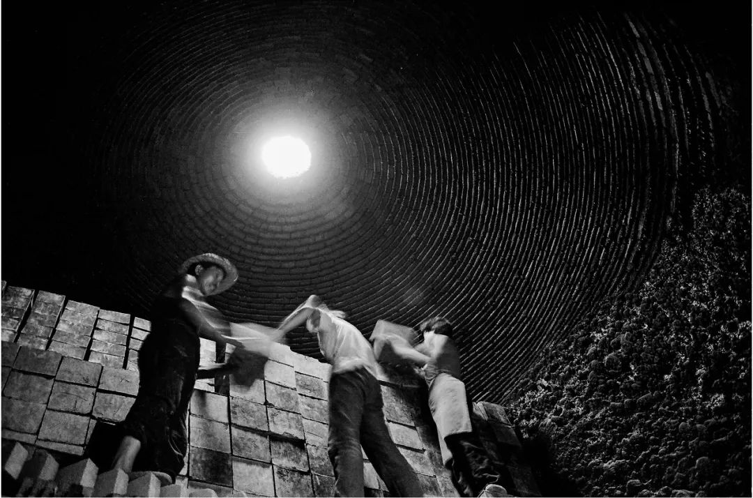 作为一位极富文化良知和人文情怀的摄影家,孙伟庆摄影的基调是厚重和沧桑的。也许是阅历和经历日臻丰富的缘故,他的镜头始终聚焦着民生的图腾和岁月的底色。在拍摄陶镇之前,孙伟庆就对淄博的陶瓷历史产生了浓厚的兴趣。他知道,在上个世纪之前,淄博的陶镇烟囱林立,一座座老窑烧出百姓的日常用品,大到水缸粮缸,小到锅碗瓢盆。到了二十世纪中叶,随着社会的变革和陶瓷产品的不断更新,各种窑的产生和改进,那些古圆窑也完成了它的使命,退出了历史舞台。