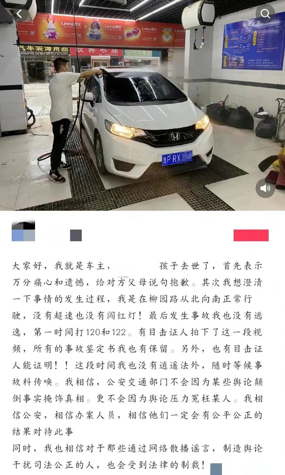 6月10日,山东省聊城市一名18岁高三女生骑车被撞,后经抢救无效身亡。其家属在社交平台上持续发文称,这起事故存在肇事者逍遥法外、两个多月没出事故责任认定、路口监控坏了等问题。8月27日晚,涉事机动车车主在社交平台上发文回应,称其是正常行驶,发生事故后没有逃逸,并第一时间拨打急救电话。