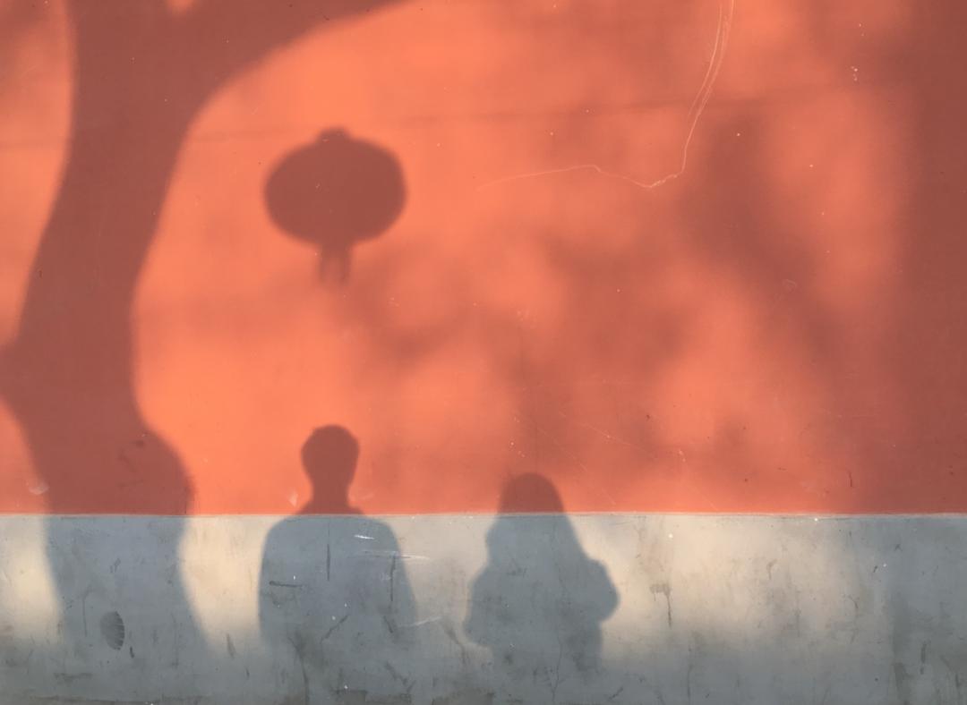 一张对我们有纪念意义的照片。当时在景山附近溜达,红墙上看见我俩影子。他刚看完《大红灯笼高高挂》,说咱俩好像在结婚啊,没想到后来我们真结婚了 / 图片由受访者提供胡安和我在心灵层面、兴趣喜好以及价值观基本一致,但具体到生活细节,也存在着很多的差异。