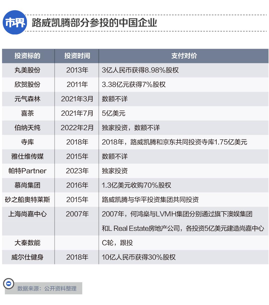 在中国,很多消费公司都曾接受过路威凯腾的投资。