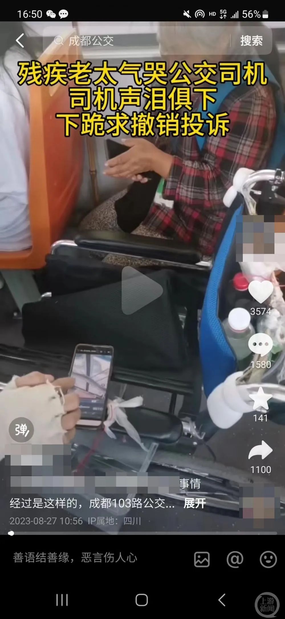 成都公交司机下跪事件追踪:未及时助残疾人乘车遭投诉