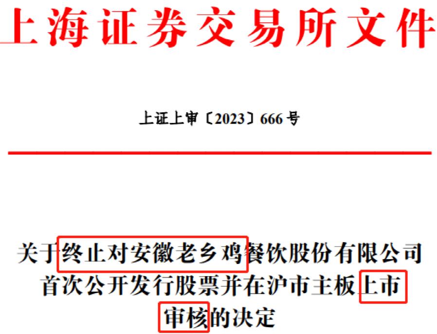 上交所8月28日晚挂出公告,终止对安徽老乡鸡餐饮股份有限公司(简称“老乡鸡”)首次公开发行股票并在沪市主板上市的审核,其保荐机构也是来自安徽本土的国元证券。