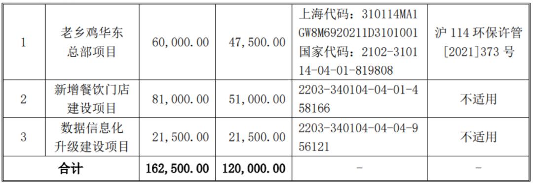 老乡鸡原计划募集资金12亿元,其中4.75亿元用于老乡鸡华东总部建设,5.1亿元用于扩增餐饮门店,2.15亿元用于数据信息化升级建设项目。