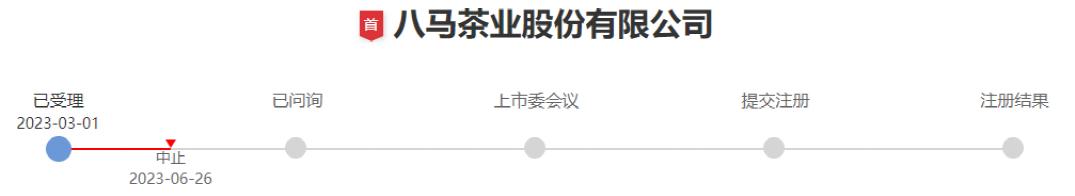 连锁茶业品牌八马茶业情况也好不了多少。资料显示,八马茶叶已是二度冲击A股市场,公司曾在2021年闯关创业板,不过在2022年5月撤单,之后在今年转战深市主板,公司招股书在今年3月1日获得受理。目前其也未收到首轮问询,而财务数据停留在去年三季报,状态显示为“中止”。