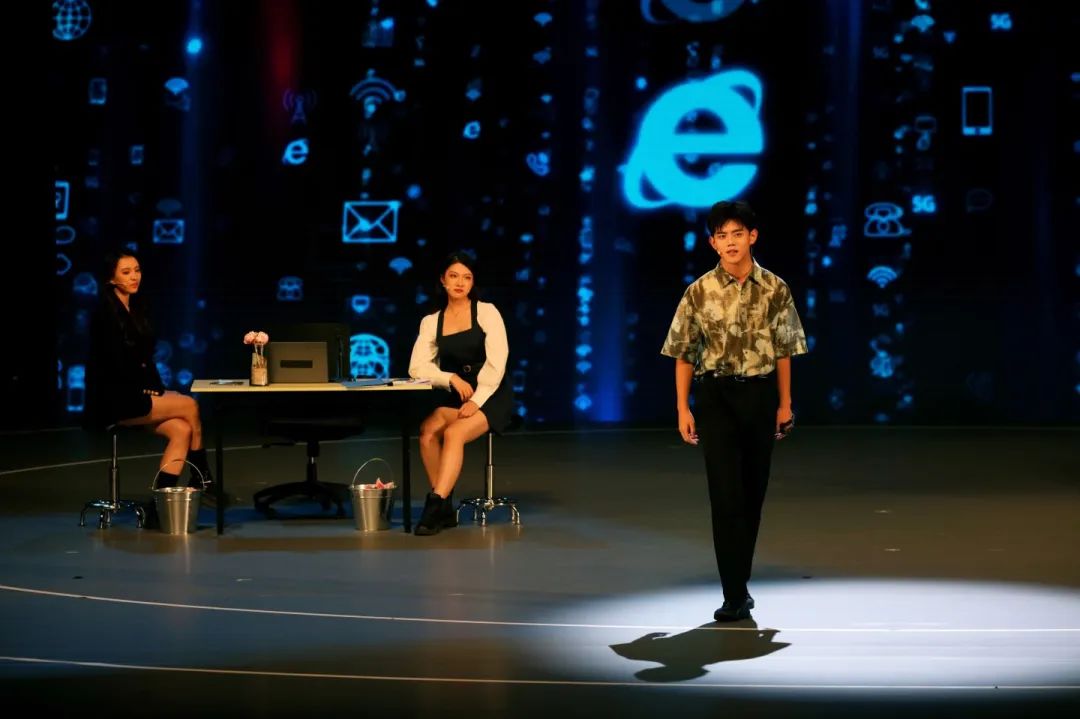 在接下来的环节,青年演员湛嘉丽和北京舞蹈学院音乐剧班的同学们为现场观众带来反诈主题的魔幻歌舞剧《真真假假》,虚实转换之间变幻莫测,让观众们仿佛置身于反诈知识的“奇幻漂流”中,现场观众不禁直呼精彩。