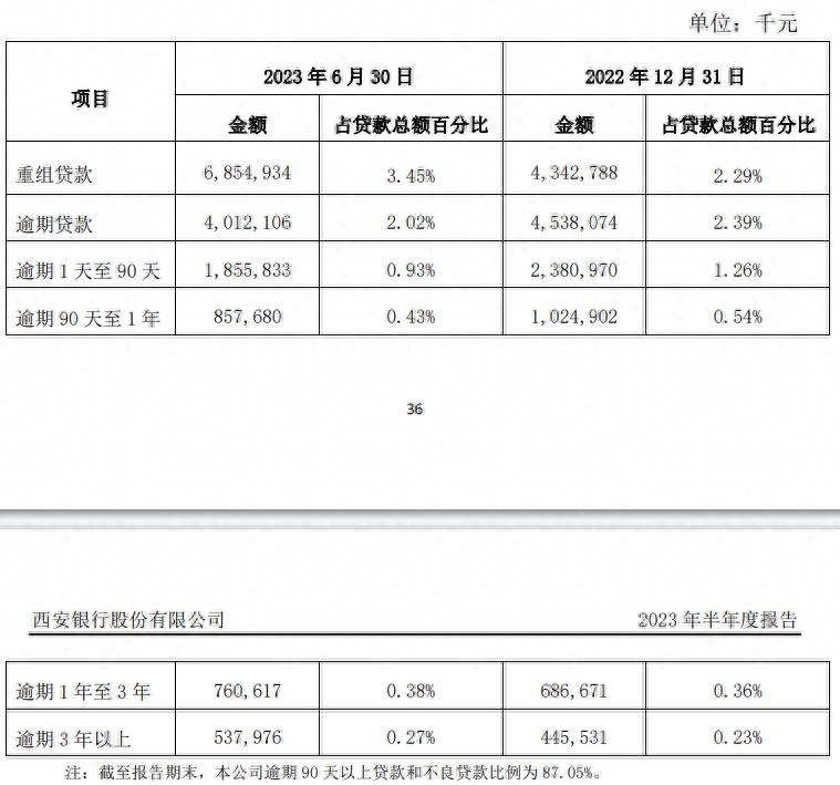 截至2023年6月30日,西安银行逾期贷款40.12亿元,去年末为45.38亿元。