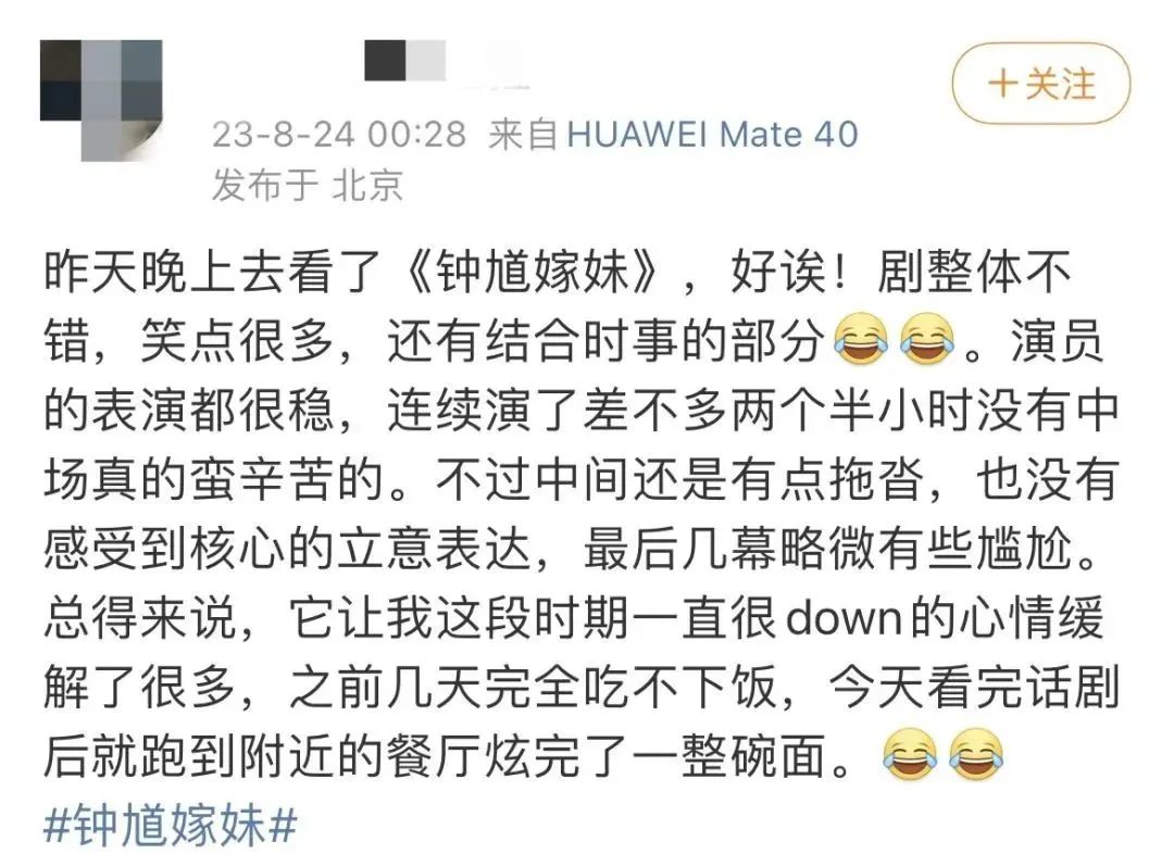 福利奖品:话剧《钟馗嫁妹》门票1张演出时间:2023年9月2日(周六)19:30