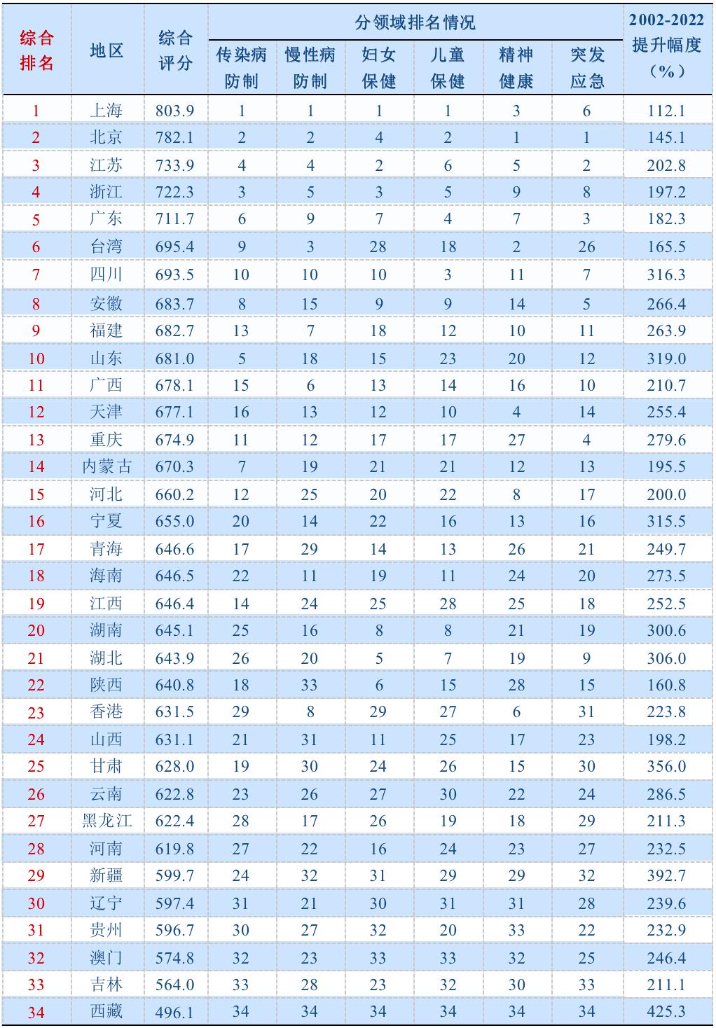 8月29日,由国内11所高校、30余家部门和机构组成的“公共健康治理能力研究组”,在安徽合肥发布了《2022年度全国公共健康治理能力排行榜》。