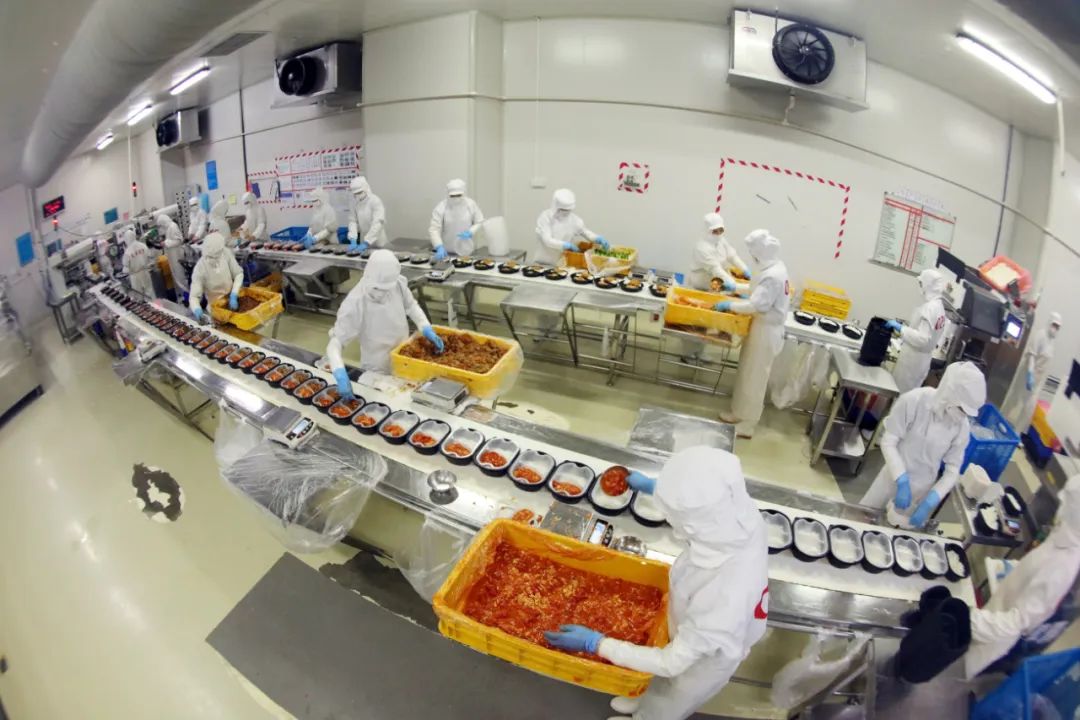 上海鑫博海农副产品有限公司食品生产车间以上海鑫博海农副产品加工有限公司为例,作为廊下食品龙头企业,鑫博海主要经营即食、即热、即配等各个品类的预制菜产品,年加工生产配送能力达4万吨,年产值近6亿元,每天预制菜生产量超过30万份。随着企业规模发展壮大,今年计划将生产范围扩展到烘焙系列,并专门量身打造预制菜生产车间,预计建成投产后年产量将翻一番。
