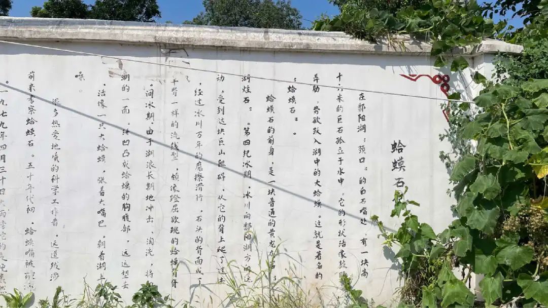 渔村入口处的右侧围墙上,写着《蛤蟆石记》