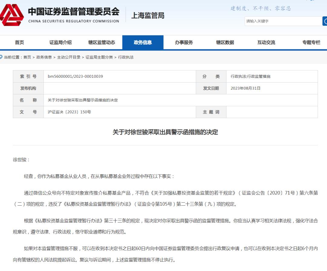 个人层面,徐世骏、卓灵晨分别被采取出具警示函措施。经查,徐世骏、卓灵晨作为私募基金从业人员,在从事私募基金业务过程中存在以下事实: