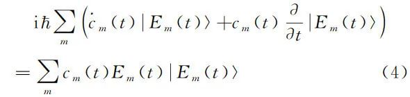 其中,cm ( t ) 是待定系数。将公式(3)代入薛定谔方程得到