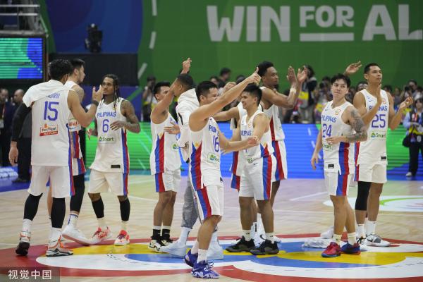 菲律宾男篮欢庆胜利。