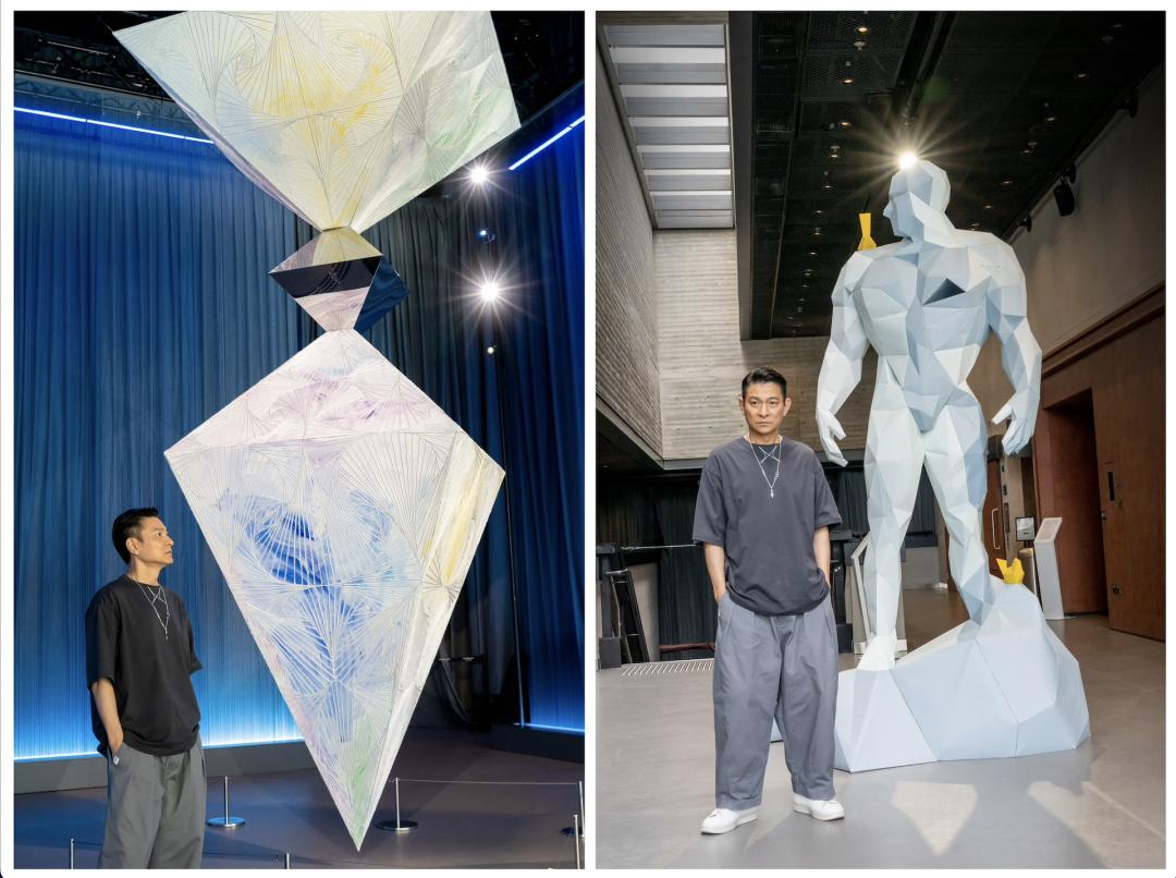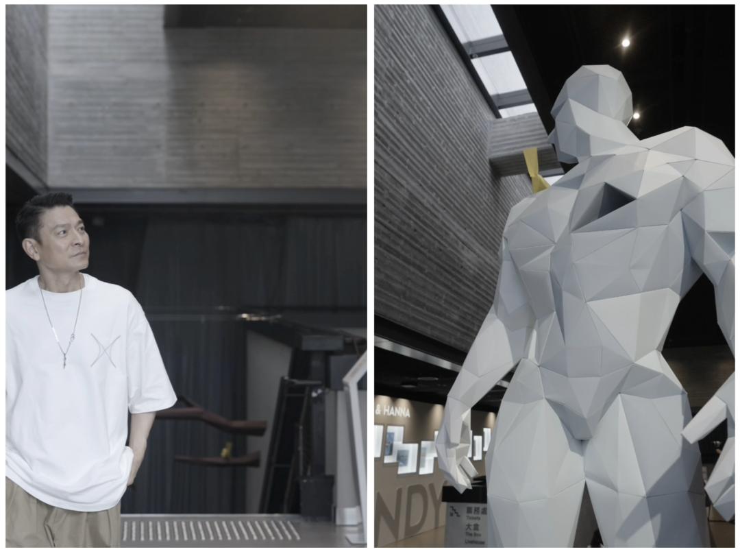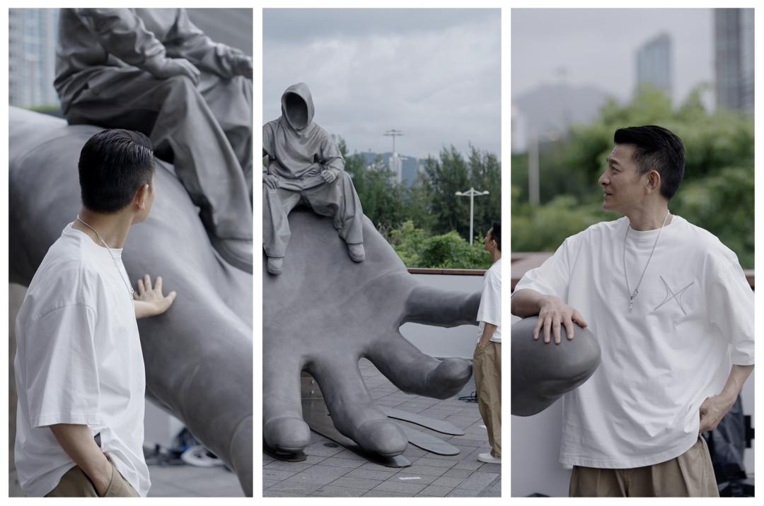 沿着楼梯走上去,他和艺术家团队STICKYLINE合作的《大块头有大智慧》大型雕塑艺术出现在眼前。刘德华深度参与了雕塑的建模和黏贴。