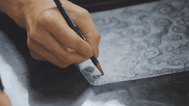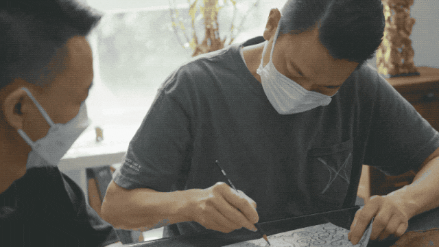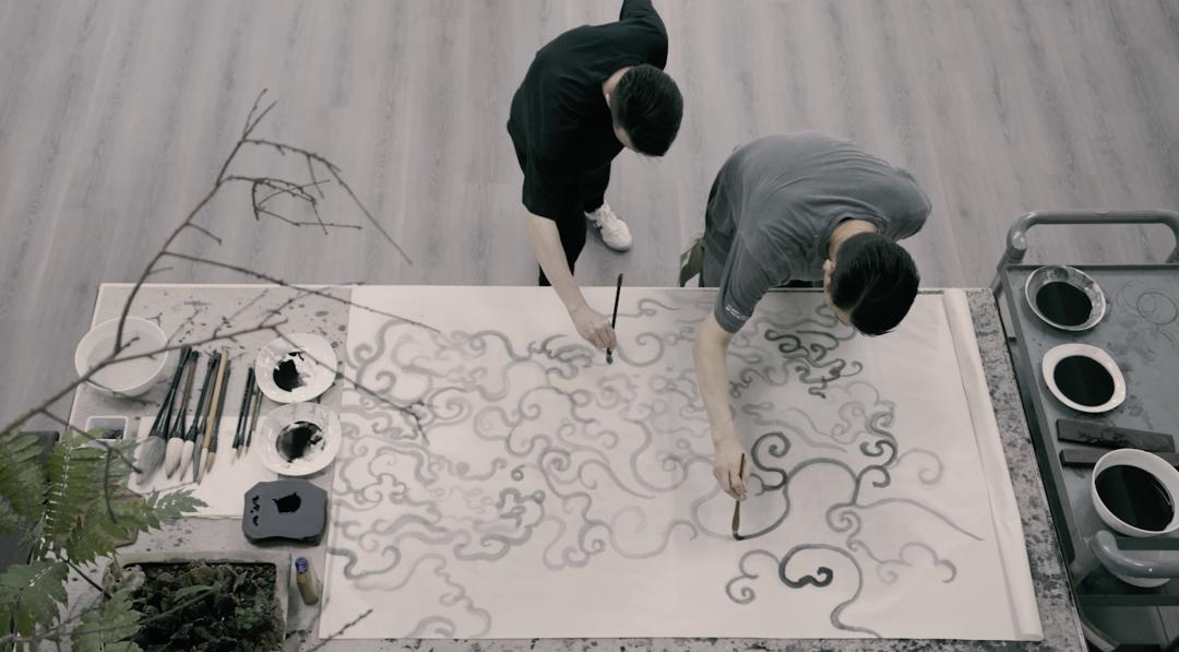 我有时候会越画越兴奋,但林老师就跟我说你可以停下来了,你应该退后一点点看看刚才画了什么。我当时就问他为什么要退后?然后发现我画的云是从上至下的一条直的走线,他的云是往两边走的。