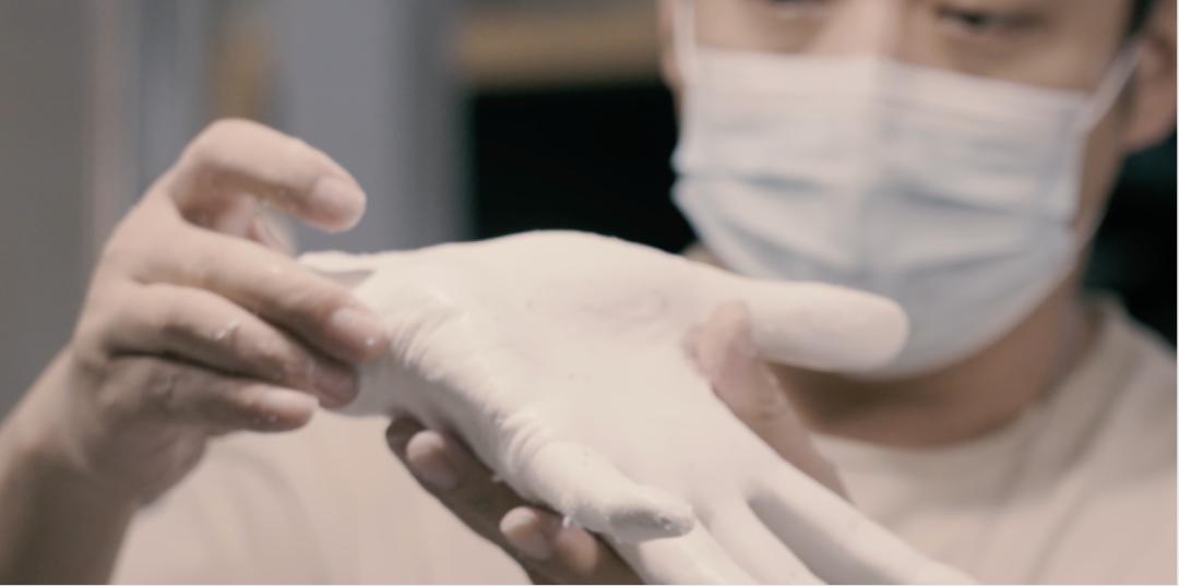 这次合作的一个作品是一只手的雕塑,最开始倒模的时候我用了他的手,做出来他不满意,他说这样没有特点。而我的小手指在拍戏的时候断掉过,现在也是歪的,所以他希望用我的手,最后做出来是我的手的模型。