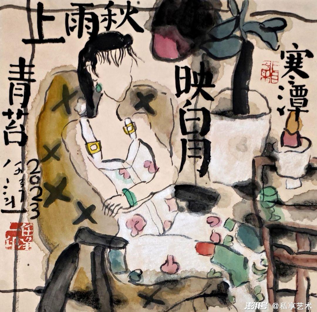 读任净一的画,不论是盛放的花朵、独伸的莲蓬还是沉思的鱼鸟、人物,我们不知他们身处何时,何地,却能读到生命流淌的声音与表述。诚如净一所言:好的作品是超越时空的,是艺术家关于生命宇宙之谜探索求解的一种特殊体认方式,是物我不二的境界里思想神游、心灵感应后顿悟的产物。故此,好的艺术作品亦如“文章本天成,妙手偶得之”,是深谙禅意的独语者,散发着人类思想和智慧的芬芳,能深入灵魂亘古不灭,这便是其笔墨通神的魅力。