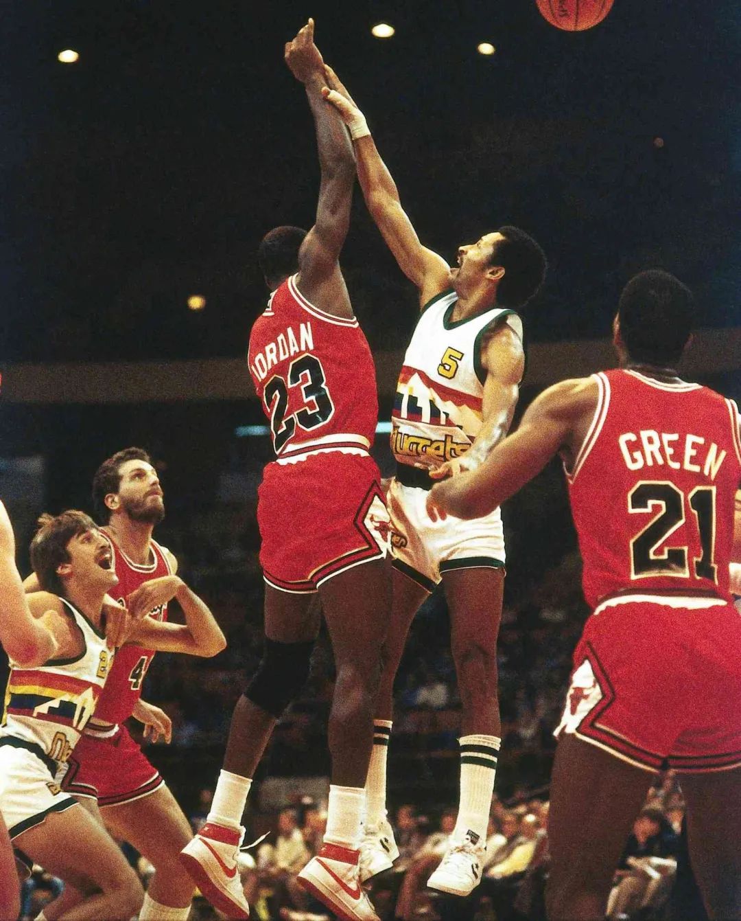 1984年10月26日晚,公牛对阵华盛顿子弹队,在芝加哥体育场的13913名观众的注视下,乔丹完成了他在NBA的首个扣篮。与他日后的辉煌生涯相比,这一晚的赛场表现难言精彩,他的投篮表现不佳,16投5中,仅得到16分[1]。